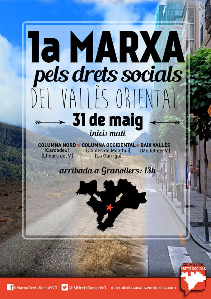 El proper 31 de maig es durà a terme la I marxa pels drets socials del vallès oriental. Una marxa organitzada per diferents col·lectius del Vallès Orientals per protestar i exigir:    - Fer marxa enrere en totes les retallades en educació, sanitat, pensions, dependència, prestacions d’atur o per situació de vulnerabilitat, etc. - Rebutgem rotundament la ...